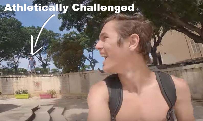 The Nuisance got followed around by a very determined but athletically challenged security guard in Malta. When The Nuisance jumped down a 7 foot wall, the security guard was suddenly perplexed. Panic set in, as he now had to run around the parimeter to keep up. He ran right, and so The Nuisance ran off with a nice head start to go along with his superior stair running ability. In short order, Mr Security Guard was left in the dust. This was quite the hilarious chase!